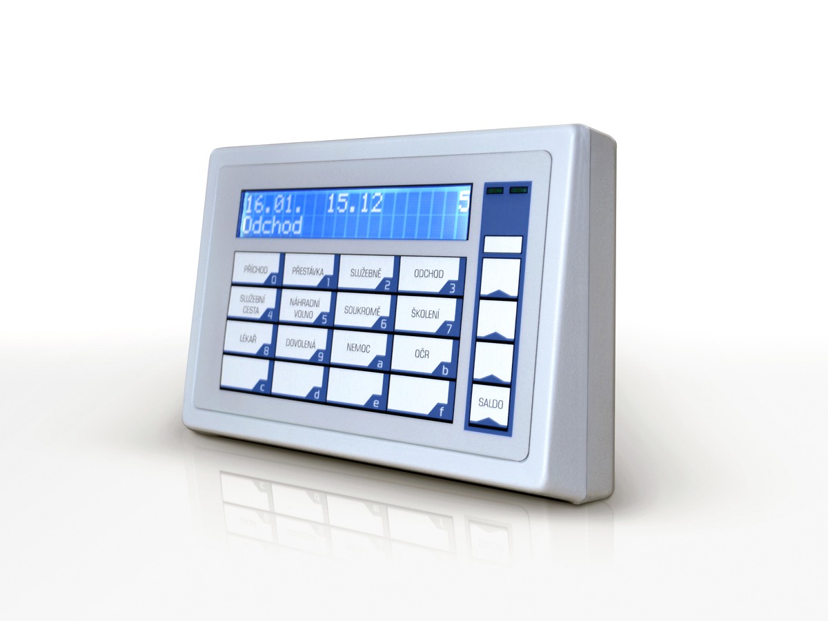 Docházkový terminál DT1000 je určen pro sběr dat o docházce zaměstnanců a případně také k ovládání vstupů do určených prostor (otevírání zámku dveří, ovládání turniketu, ...) a sledování pohybu osob v těchto objektech.